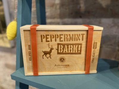 Askinosie’s handmade Peppermint Bark is made from single-origin dark chocolate, then layered with buttery white chocolate and topped with crushed bits of natural peppermint (made with tapioca syrup, not corn syrup!). It is hand-crafted in small batches and then nestled in a festive pine box.